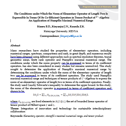 Many researchers have studied the properties of elementary operators, including numerical ranges, spectrum, compactness and rank, in great depth, and numerous results have been obtained using different approaches such as spectral resolution theorem, tracial geometric mean, finite rank operator and Stampfli's maximal numerical range. The conditions under which the norm property can be expressed in terms of its coefficient operators, has also been considered in many studies but remains unresolved. This study sought to determine the application of Stampfli's maximal numerical range by determining the conditions under which the norm of the elementary operator of length two can be expressed in terms of its coefficient operators. The study used Stampfli's maximal numerical range and techniques of tensor products of -Algebras to express the norm of an elementary operator of length two in terms of its coefficient operators. Finally, the study used Cauchy Schwartz's inequality to determine the upper bound. In this study, the norm of the elementary operator is expressed in terms of coefficient operators and shown to be,